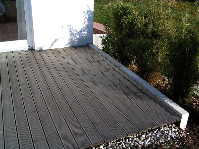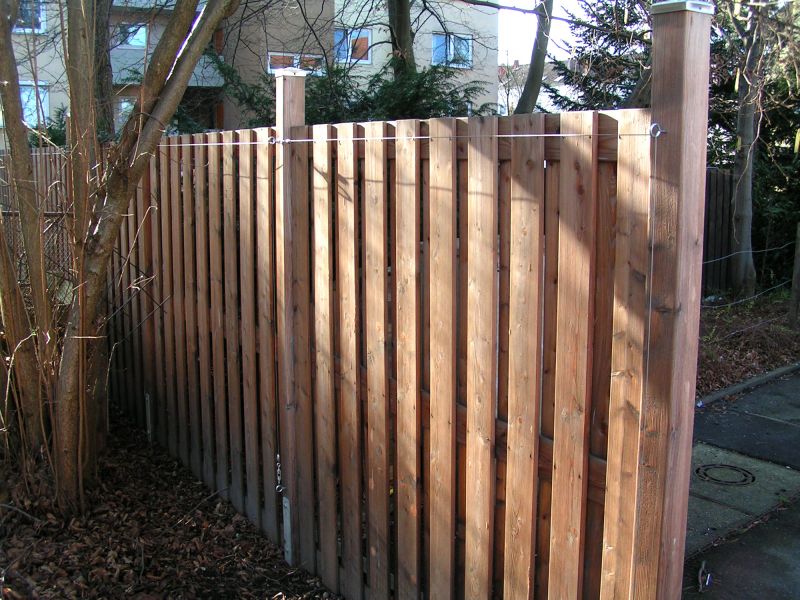 Zaun aus Lärchenholz mit einer Rankhilfe für die zukünftige Begrünung