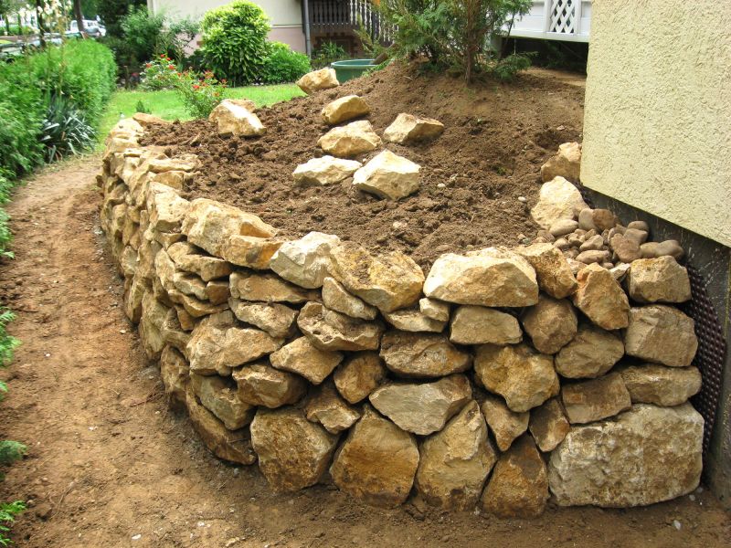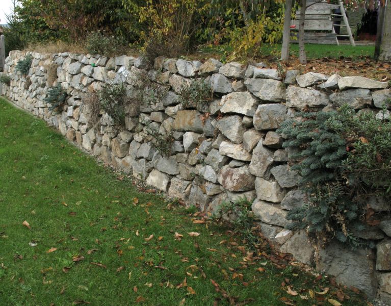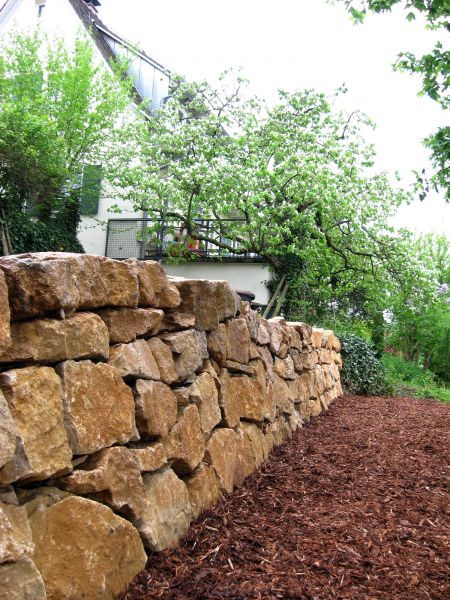 Terrassierung mit einer Trockensteinmauer aus Kalkstein