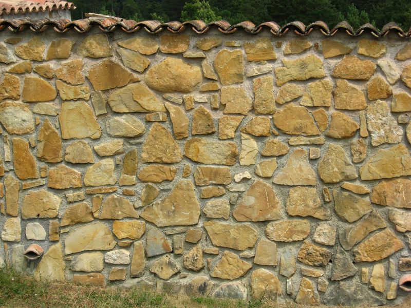 Natursteinmauer verfugt, mit Tonziegelabdeckung