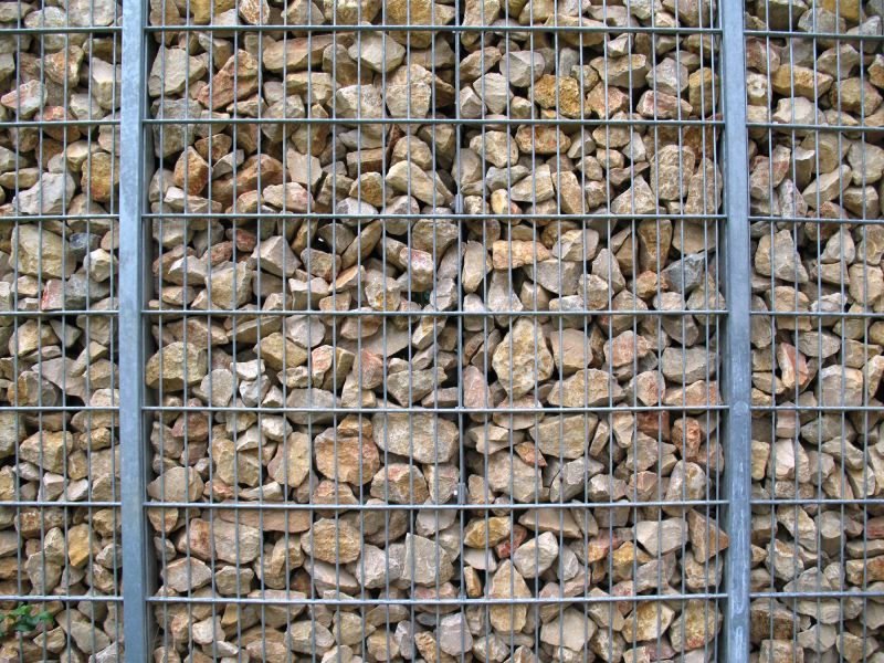 Gabionenzaun mit Kalkschotter befüllt