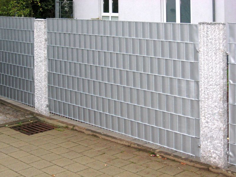 Gittermattenzaun mit eingeflochtenen Kunststoffstreifen
